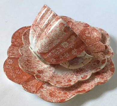 WILEMAN & CO. FOLEY SHELLEY CHINA ENGLAND PATTERN 6027 SHAPE 115510 TRIO cup Saucer & cake plate - ANTIQUE C.1890 hairline