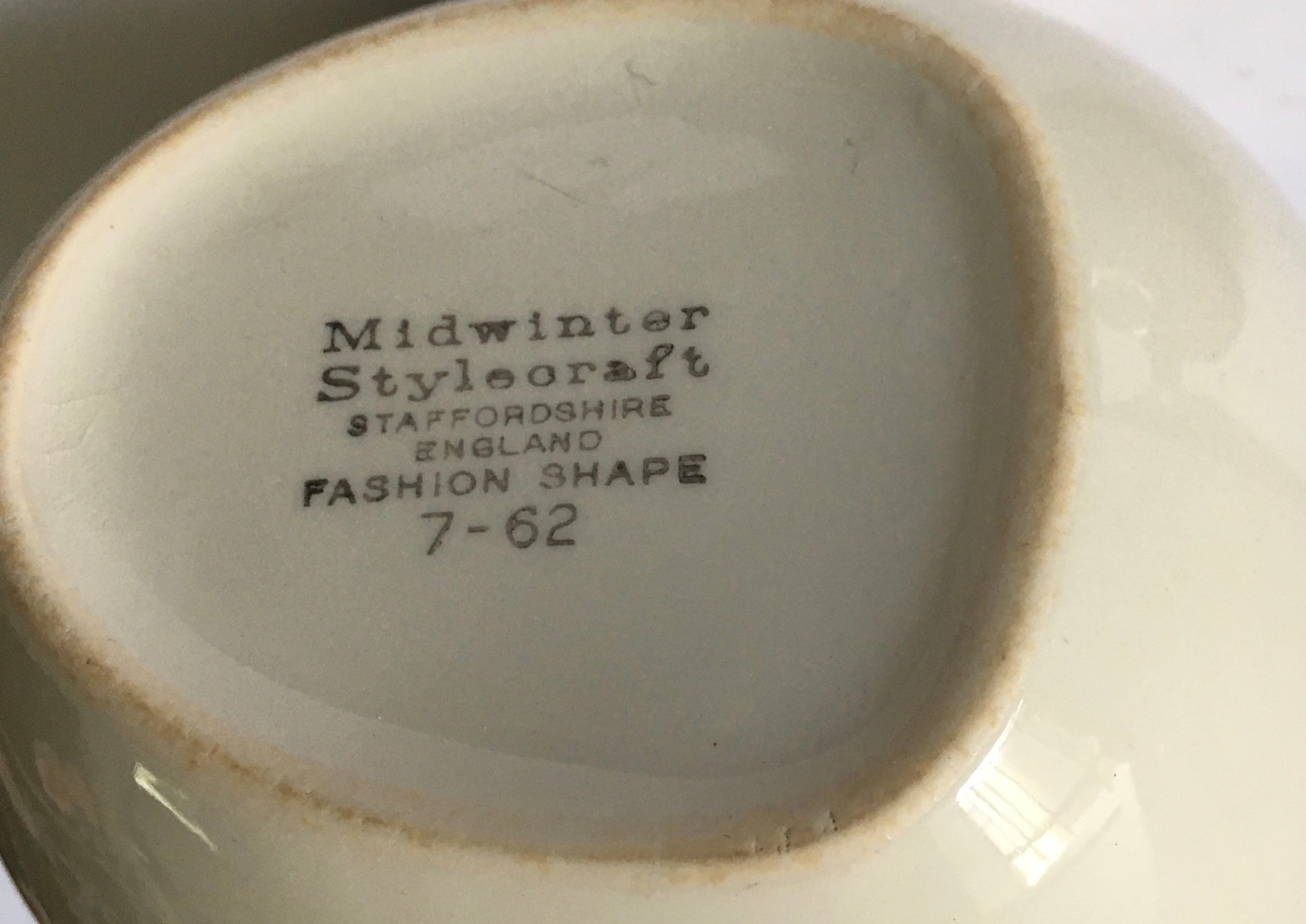 Marked "Midwinter Stylecraft staffordshire england fashion shape 7-62"