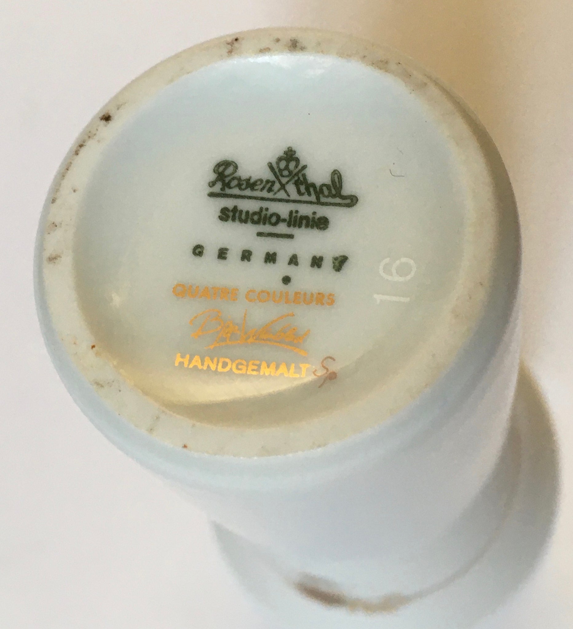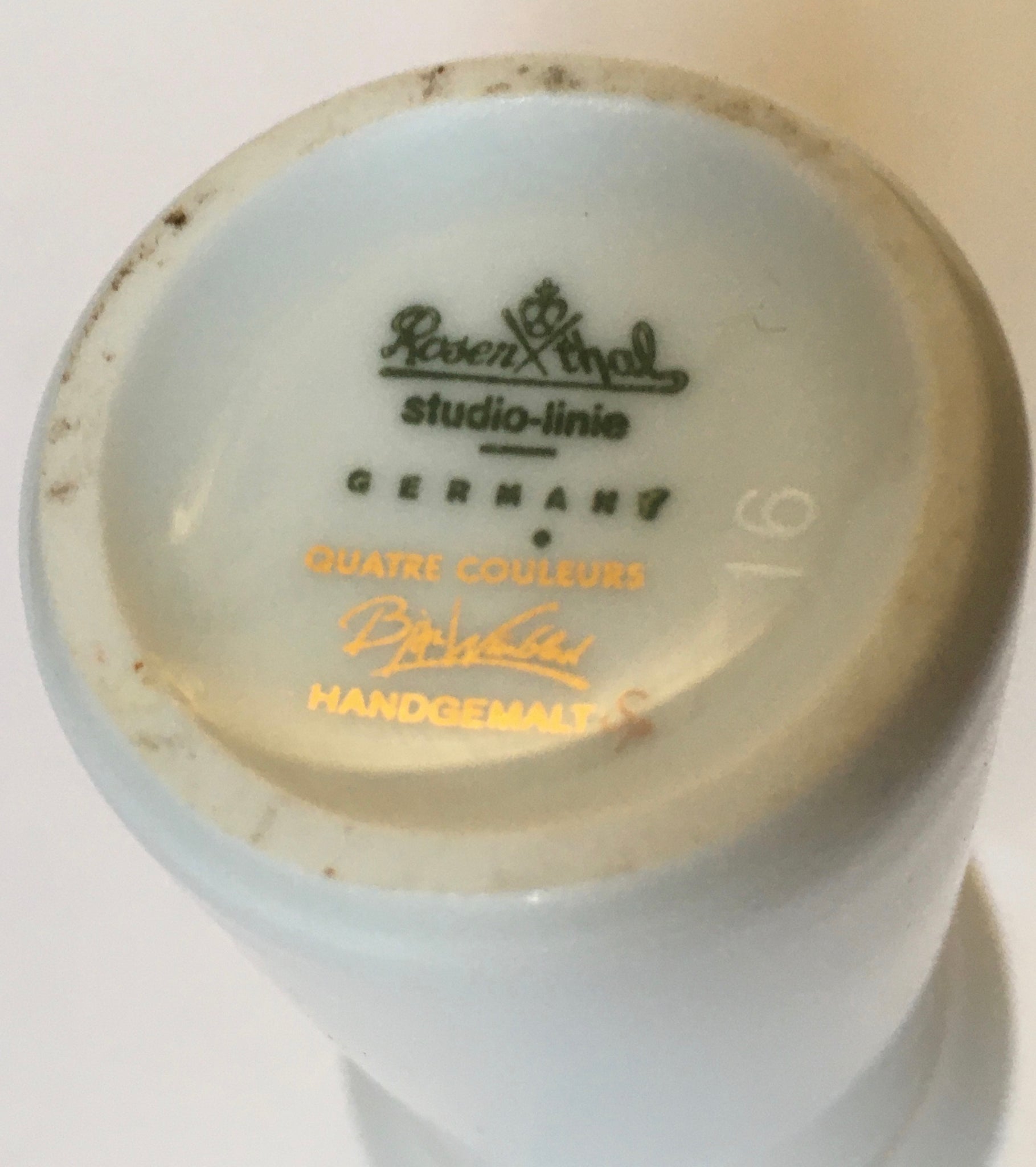 Marked "Rosenthal Studio-Linie Germany QUATRE COULEURS Bjorn Wiinblad Handgemalt"