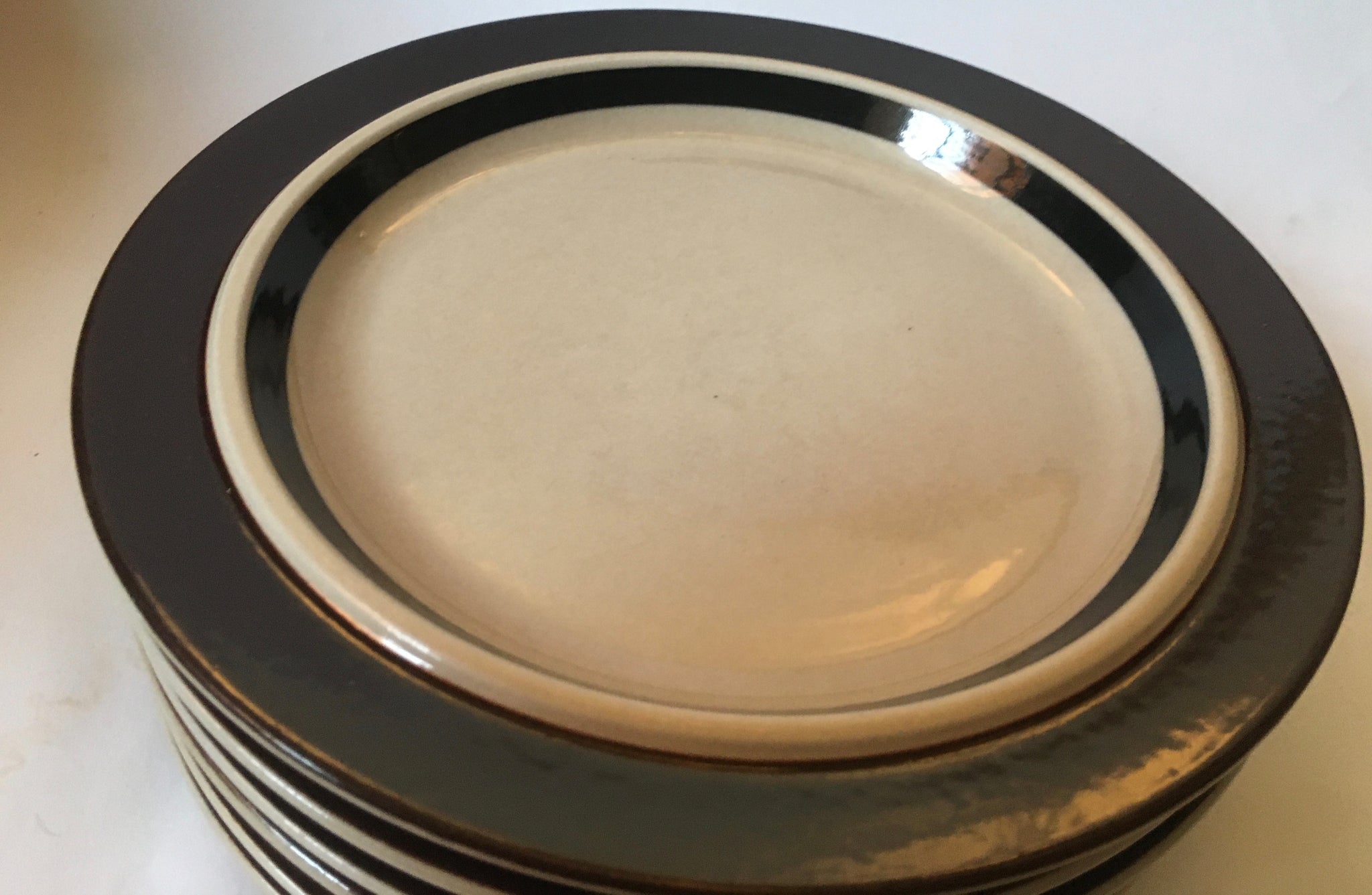 Six Arabia Finland Ruija Troubdour Arabia Ruija Brown dinner plates. Design : Raija Uosikkinen,  Model/Shape : Ulla Procope